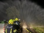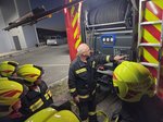 Nachdem im Schulungsraum die Theorie besprochen wurde, ging es danach um den Aufbau einer Relaisleitung und gleichzeitig der Verwendung bzw. Handhabung des Wasserwerfers und Hydroschildes.